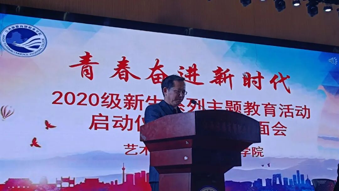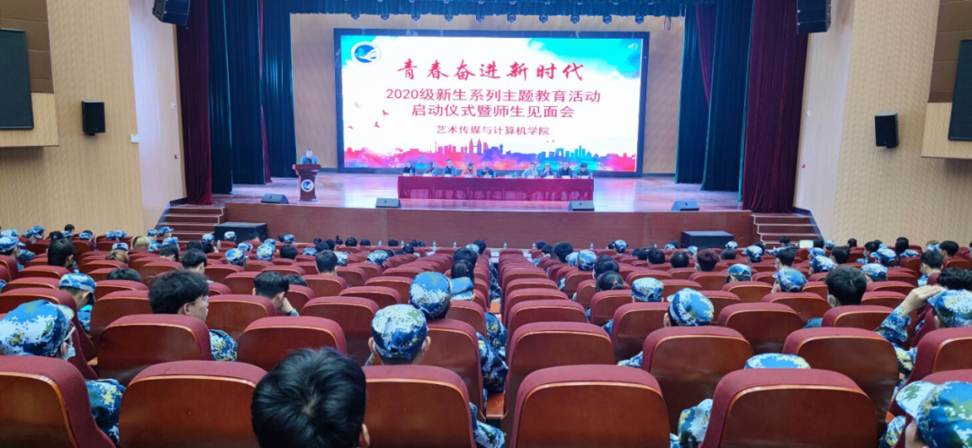 2020年11月5日晚,艺术传媒与计算机学院在学校文体中心隆重举行“青春奋进新时代”主题教育活动启动仪式暨2020级新生师生见面会。院长刘建华、党总支书记王晓雷、党总支副书记田子蕊、办公室主任齐全、教务科科长龙全圣及各教研室主任、新生辅导员和2020级全体新生参加,大会由团总支负责人刘婷婷老师主持。